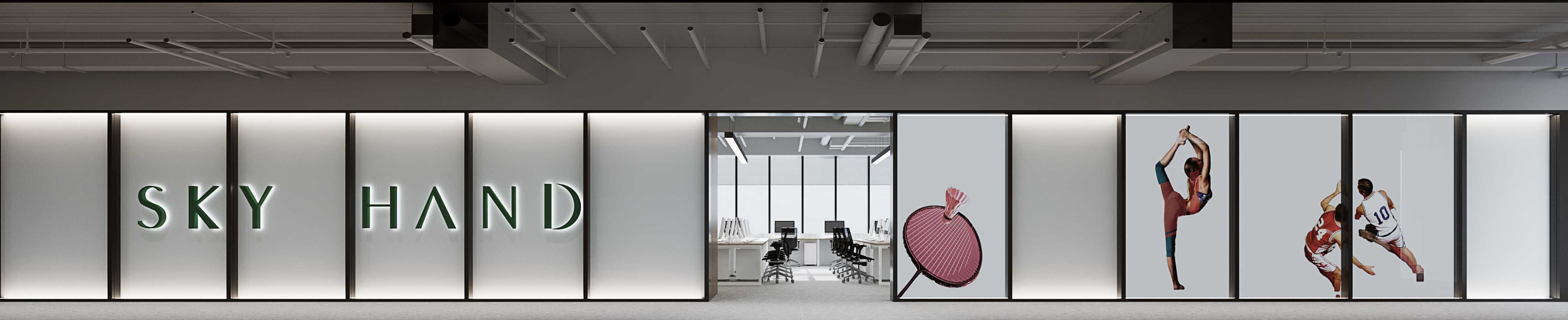 項(xiàng)目名稱:苗江體育新辦公室設(shè)計(jì)裝修案例效果圖(品牌名SKY HAND)