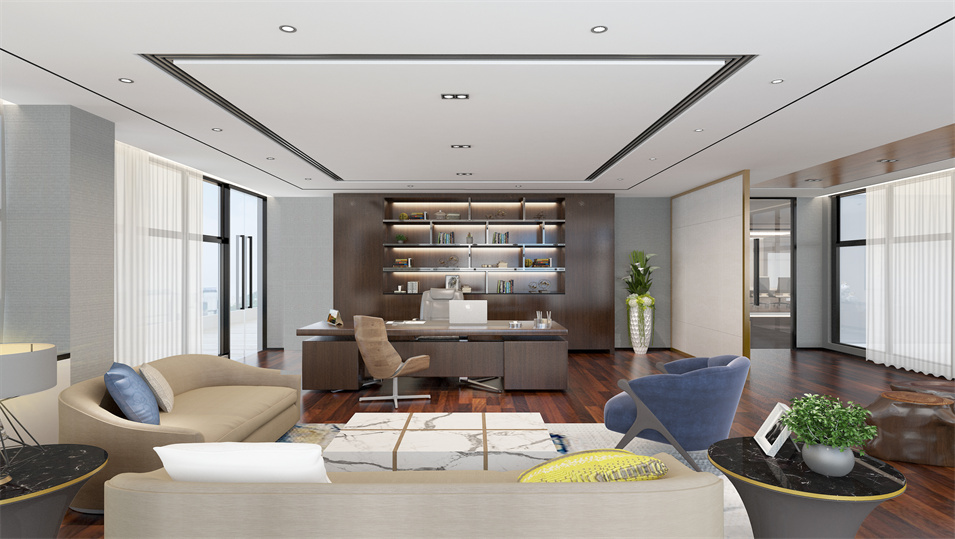 設(shè)計(jì)介紹:主要展示前臺(tái)、洽談區(qū)、走廊、貴賓區(qū)、會(huì)議室、辦公區(qū)等各個(gè)區(qū)域?qū)嵨飯D,設(shè)計(jì)師們采用現(xiàn)代簡(jiǎn)約風(fēng)格辦公室設(shè)計(jì),主要以白色為主,藍(lán)色更符合智能化科技的公司形象,通過(guò)幾何圖形與條紋裝飾打造科技智能的辦公空間。