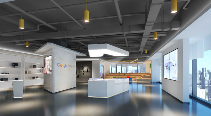與一般的商場售賣不同,這一類的辦公企業(yè)常常與展品展示分屬兩層,除了注意裝修和產(chǎn)品布局中的通道外,還要求辦公與展廳有良好的銜接,便于商業(yè)辦公能夠很好的借助產(chǎn)品的裝飾作用;展廳的裝修設(shè)計需適應(yīng)時代發(fā)展;在引導(dǎo)顧客咨詢方面,除了必須的人工服務(wù)外,辦公樓展廳室內(nèi)裝修裝飾有一定的引導(dǎo)性表示也是很有必要的。